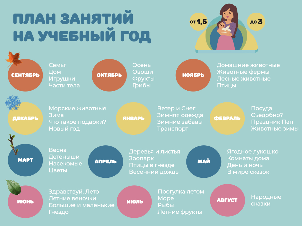 Занятия у детей от 1,5 до 4 лет отличаются, они требуют большого количества методических пособий, сильного эмоционального отклика от педагога и количество мест в группе ограничено до 5 детей максимум.